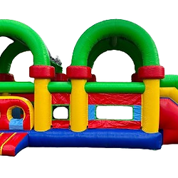 The Interactive Course Bounce House comes with a slide and is instant fun at your event! Fun, colorful, and hassle-free, our bounce houses guarantee a memorable experience for all